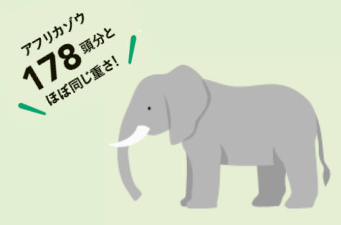 商品カタログや「お料理セット」の紙トレーは、回収することの認知が広まっており、高い回収率となっています。しかし、米袋は半分以下、カタログや商品のまとめ袋はなんと3割以下。回収されなかった米袋・まとめ袋が全部捨てられていたとすると…