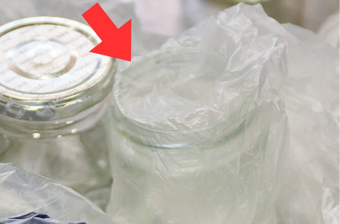 リユースびんを出す際にまとめ袋で包んであると、分別の段階で気づけずに圧縮してしまうことがあります。結果的にびんは割れてリユースできず、割れたびんが混ざったまとめ袋もリサイクルできずにごみとして処分されることになってしまいます。