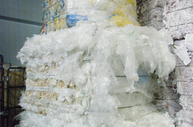 ③異物除去後、圧縮してベールと呼ばれる固まりに加工