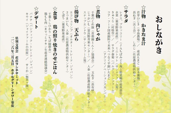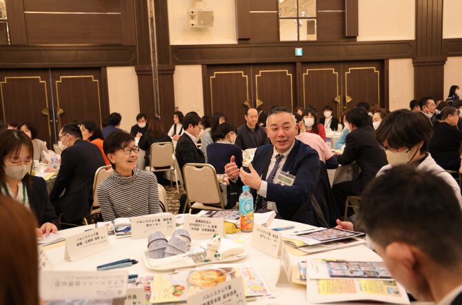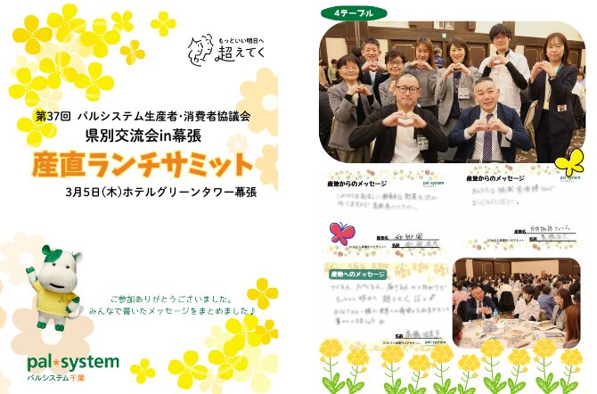 生活協同組合パルシステム千葉(本部:千葉県船橋市本町、理事長:髙橋由美子)は3月5日(木)、ホテルグリーンタワー幕張(千葉市)で43産地の生産者67人と利用者131人、役職員64人が交流する「産直ランチサミット」を開催しました。262人が一堂に会し、産直提携を結ぶ各産地の食材を使用したランチを囲み交流しました。