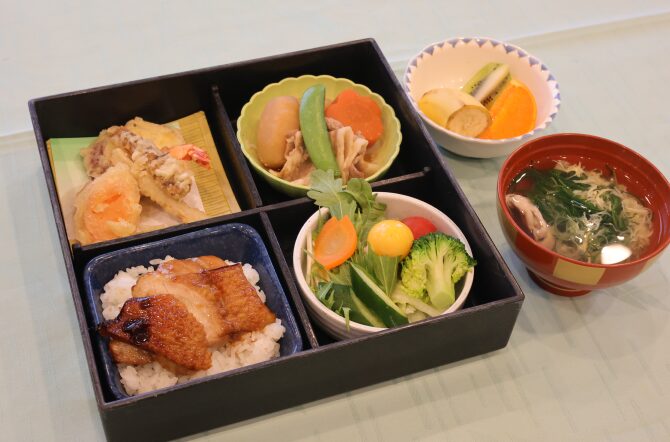 昼食には、6品のメニューに19産地の食材を使用した「産直ランチ」が提供されました。生産者と利用者、役職員が共にテーブルを囲み、青果や鶏卵、肉や魚介などそれぞれの産地に思いを馳せながら、食材を味わいました。