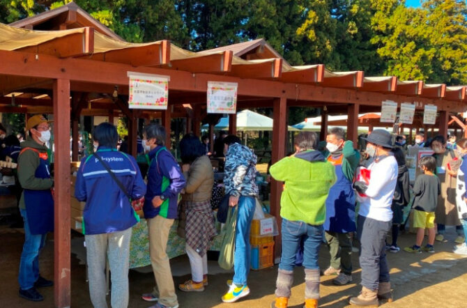 コア・フード牛を焼いているいい匂いにつられ、軍鶏のスープで温まり、《寺島農場》の若芽ひじきを味わいました。《無茶々園》のみかんや《ジョイファーム小田原》のキウイや産直バナナのフルーツが並べられ、有機コーヒー、牛乳など、さまざまな試食・試飲がありました。米や青果などの販売も多く、参加者は楽しそうにいろいろ見て回っていました。