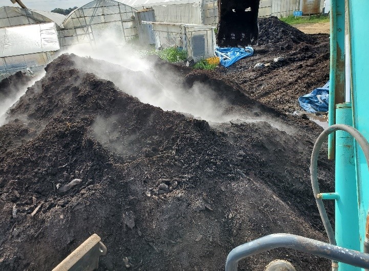 有機質堆肥。発酵が進み、微生物が元気になり熱を発している様子。