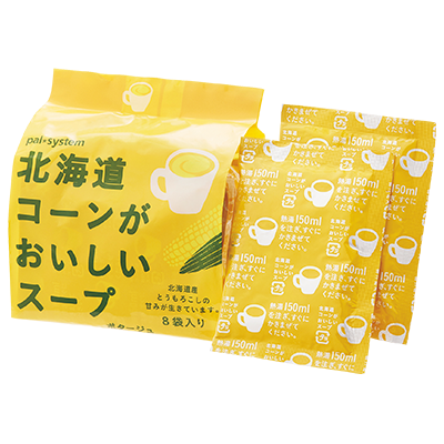 - 熱湯50㏄でコーンスープ2袋を溶かしておく。冷たい牛乳を加え温度を冷まし、卵を割り入れよく混ぜる。