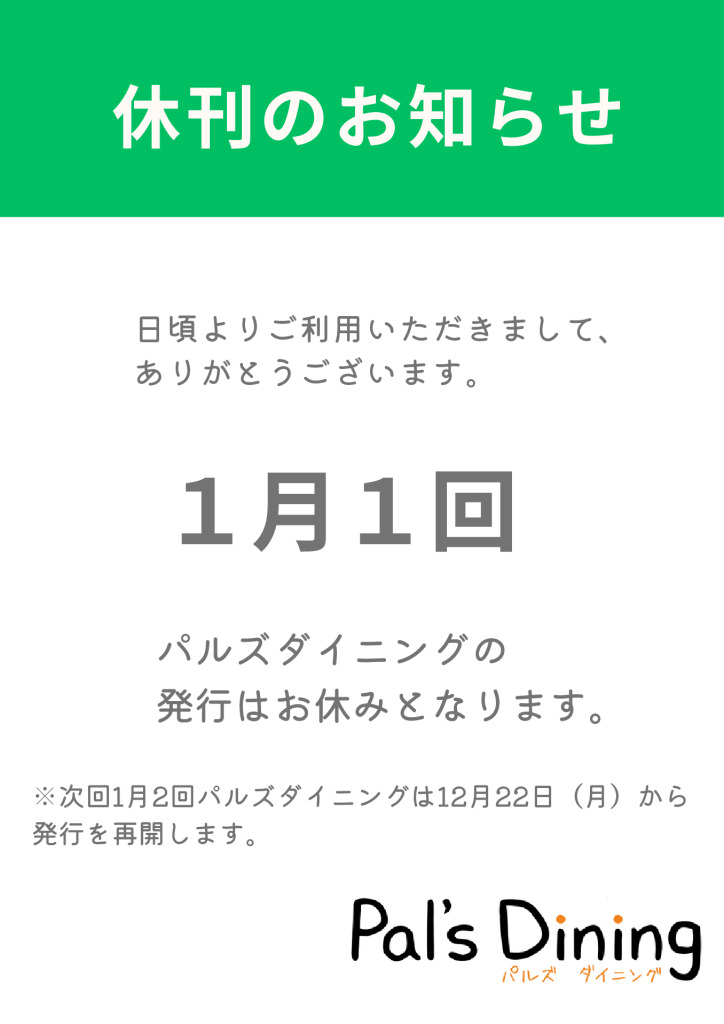 『Pal’s Dining』は毎週月曜日に更新されます。インターネットで注文する場合は、注文番号を入力いただくとご注文できます。 注文する企画回をお間違えないようご注意ください。