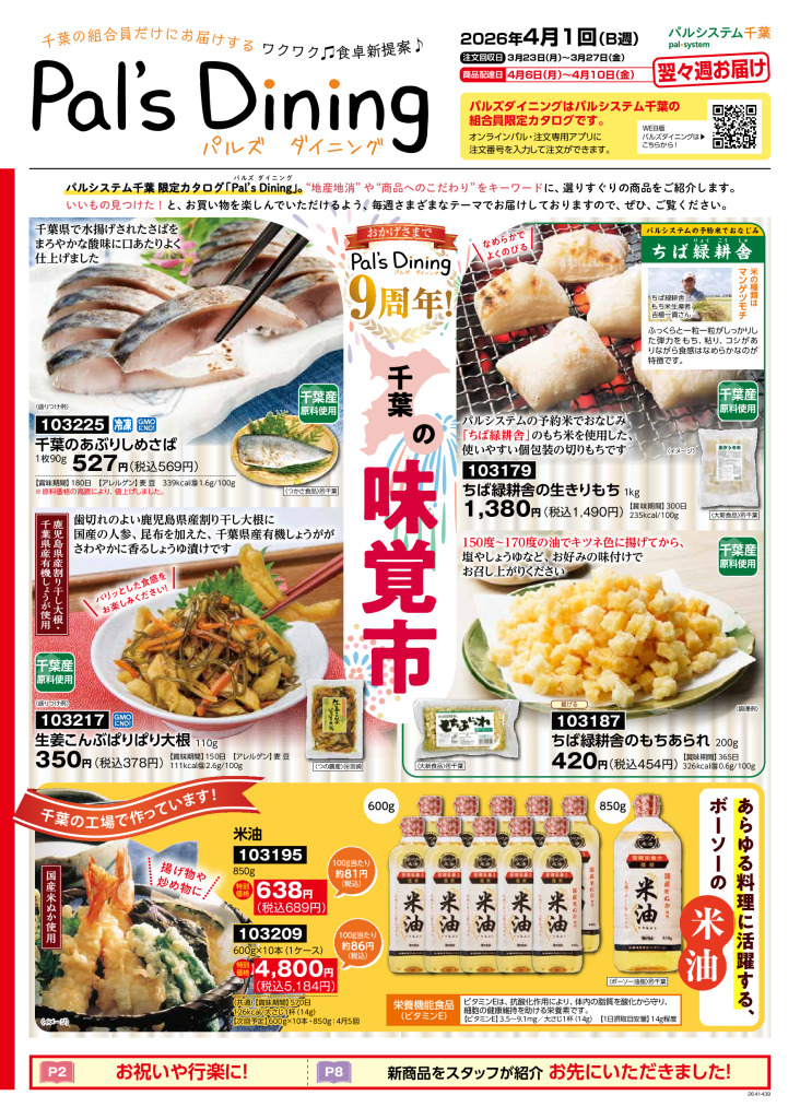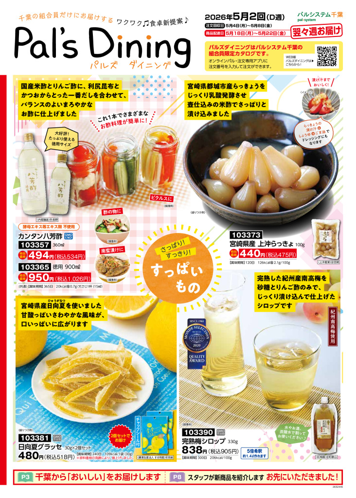 パルシステム千葉限定のカタログ『Pal’s Dining(パルズダイニング)』では、パルシステム千葉の組合員だけが利用できる、商品担当がこだわり抜いた、とっておきの商品をご案内しています。