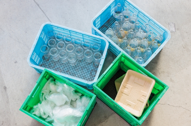 皆さんから返却いただいたリユース・リサイクル品を分別してから降ろし、構内作業スタッフに渡して仕分けしてもらいます。