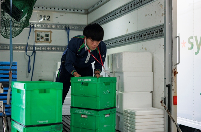 生協の宅配パルシステムをご利用の組合員へ、商品をお届けする仕事です。