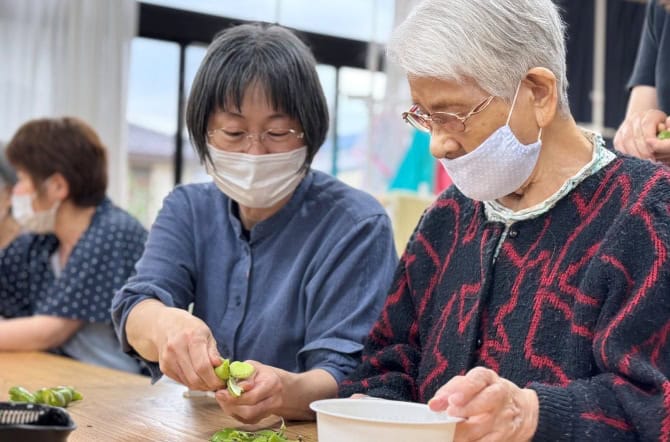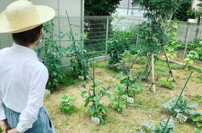 デイサービスの庭ではご利用者といっしょに家庭菜園もしています。知識が豊富でお野菜を育てるのが上手な方もいるので、お花や畑作業が好きな方は楽しめると思います。みんなで楽しくいい汗をかきながら作業しています。職員たちは常に体も口も動かしていますね。