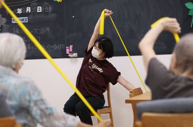 今ある身体機能を維持して自立した生活が送られるように、看護師と体操などを行っています。また、食事前には誤嚥予防のため口腔体操をしています。