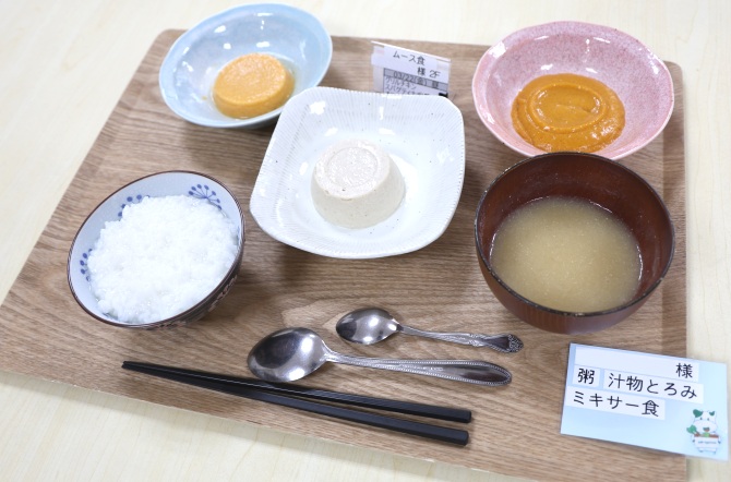 食事形態はご希望に合わせて提供しています。万が一にも取り間違いが起きないようネームプレートを付けるなど徹底した管理を行っています。