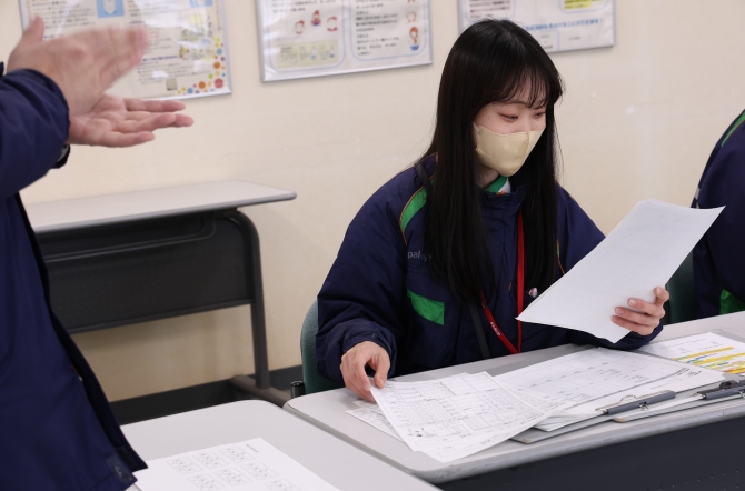 上長に今日の報告をします。ときには上長がお客さん役になってご案内の練習をすることも。電話がけや日報の記入などの事務処理を終えて本日の業務終了!
