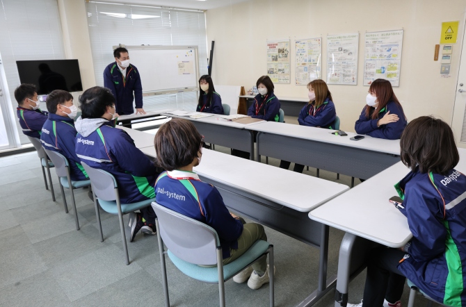 事務所に戻って朝礼開始。前日の実績報告や成功事例の共有など、みんなでざっくばらんに話しながら情報交換をします。