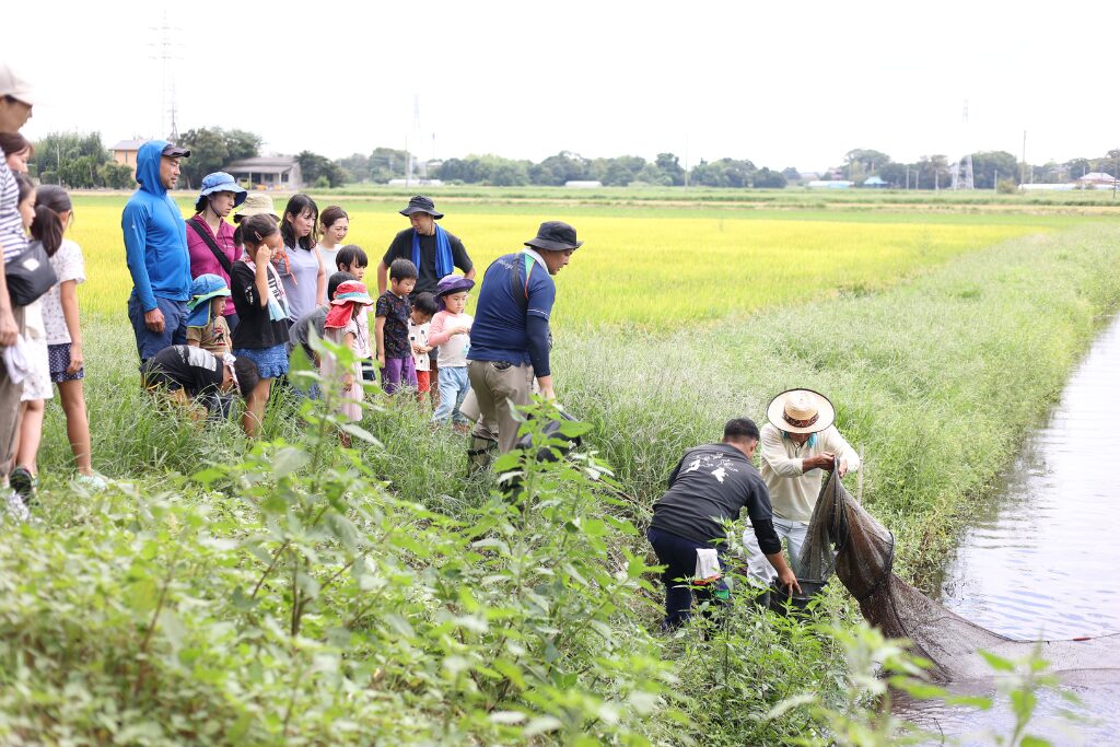 ちば緑耕舎の水路にもたくさんの生きものが棲んでいて、印旛沼で繁殖した外来種の亀が流れつくこともあります。環境保全型農業を進めることにより、田んぼや水路の生態系に変化が現れてきました。毎年行う「生きもの調査」の結果により、減農薬によって増えたイトミミズが田んぼに良い影響を与えていることがわかりました。「自然は食に繋がっている」ことがよくわかります。